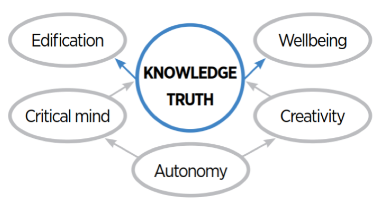 - We are guided in our actions by our core values of truth and knowledge, autonomy, creativity, critical mind, edification and wellbeing.