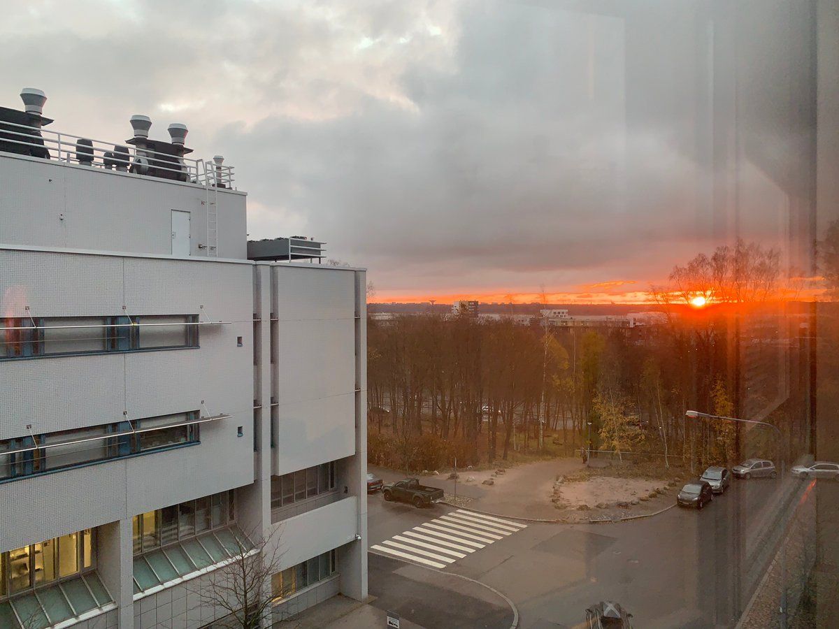 Perhaps the last sunrise picture from my office until 2019; I had my arm right out of the (internal) window just to get this (there's an annoying external pane of glass, too).