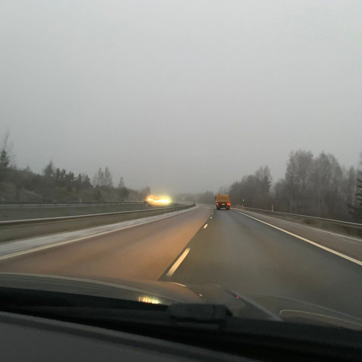 Heading into the gloaming, driving to Jyväskylä for Particle Physics Day hosted by
