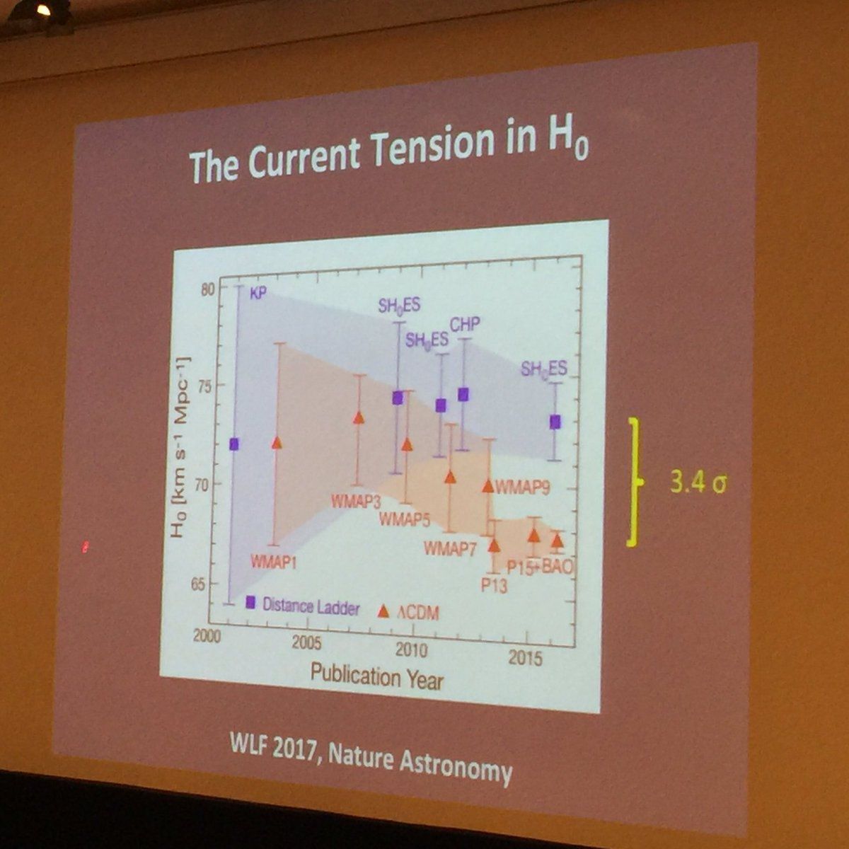 Nice visualisation of Hubble constant results over time from Wendy L. Freedman's talk at #cosmo17